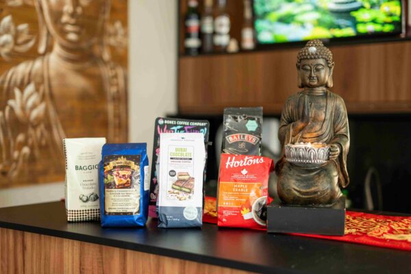 Outro destaque é a curadoria sensorial, com mais de 50 essências utilizadas em aromaterapia e disponíveis em difusores, águas de lençol, velas e vaporizadores. A loja também oferece perfumes autorais, velas e incensos artesanais importados. Para completar a vivência, a Morada do Buddha representa a Ayo Kombucha, com mais de 20 sabores, além do chopp Kairós, servidos em duas chopeiras integradas ao café. O espaço é petfriendly.