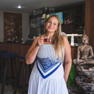 A experiência vai além das terapias. O espaço abriga um Café Lounge acolhedor, pensado tanto para quem aguarda atendimentos quanto para quem busca um momento de pausa, trabalho ou conexão. O menu reúne mais de 15 tipos de cafés especiais de diferentes regiões do mundo e cerca de 50 variedades de chás selecionados internacionalmente, incluindo receitas autorais desenvolvidas pela proprietária, com cardamomo e ervas especiais. Sanduíches, salgados, bombons e tortas saudáveis, sem glúten e sem lactose, completam a proposta.